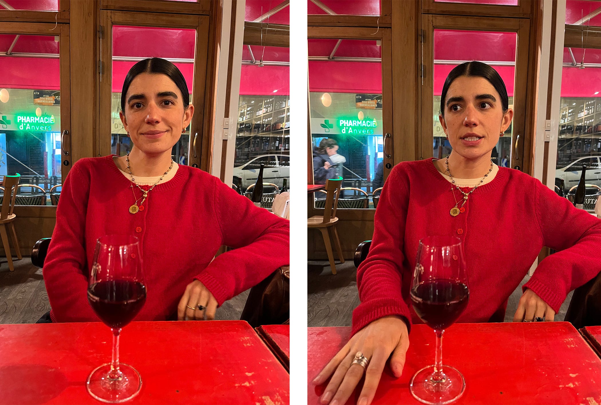 The key to making everything winter-wearable is layers. Light layers. I pile them on when it’s cold. Sweaters and long-sleeves were my bread and butter on this trip. Below, my red sweater and a delicious red natural wine at Le Vin Au Vert in the 9th.